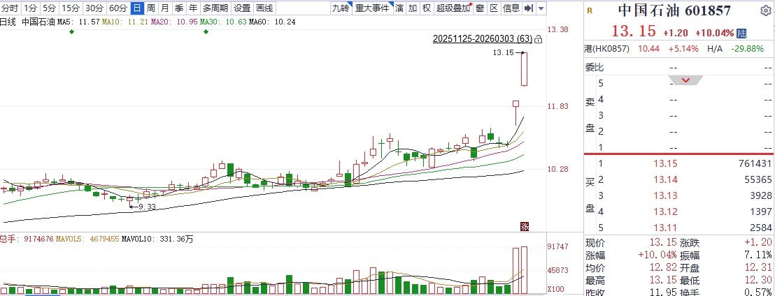 ”3月3日,承接前一交易日大涨之势,“三桶油集体高开,随后走势也大致相仿,持续上攻并封死涨停板。