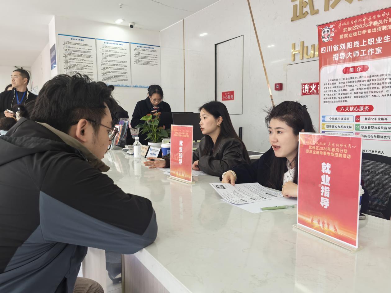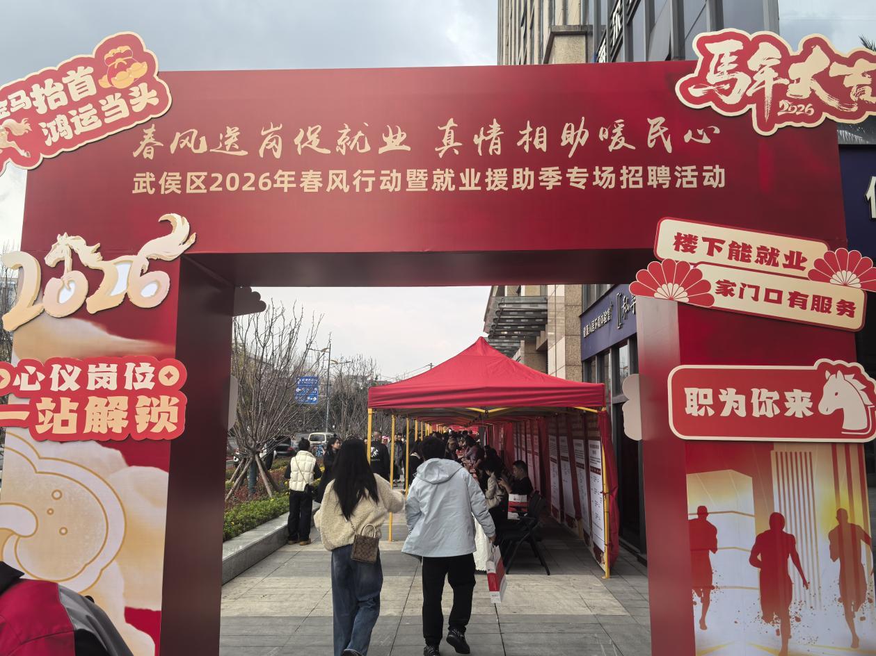 3月3日,农历正月十五,元宵佳节。成都市武侯区人力资源市场门前,一场招聘会正热闹展开,武侯区2026年春风行动暨就业援助季专场招聘活动正式启动。