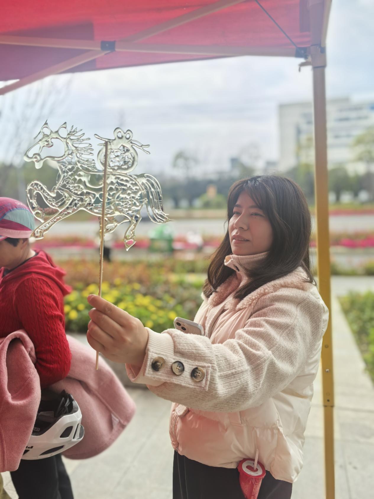 活动现场创新设置了非遗体验专区,糖画艺人以勺为笔、以糖为墨,勾勒出美好祝愿;钩针编织、竹编技艺展台前,匠人现场展示精湛技艺;“箭入福筒”游戏互动区则欢声笑语不断。