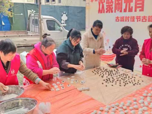古城村组织开展“欢聚闹元宵・邻里共安康”古城村佳节古韵之元宵节主题活动,以搓元宵、品元宵、传文化为核心,让广大参与者在沉浸式体验中感受元宵韵味,共庆佳节、共话美好。活动现场张灯结彩,节日条幅高高悬挂,处处洋溢着浓浓的节日气息,更是烧起柴火,让传统佳节更具烟火气与感染力。活动将动手体验、美食品尝与文化宣传结合,吸引村民群体广泛参与。搓元宵体验环节是本次活动的核心亮点,工作人员提前准备好糯米粉、黑芝麻陷等新鲜食材,现场讲解元宵的制作技巧、南北差异及民俗寓意,志愿者们演示搓制手法。参与者热情高涨,纷纷上手体验,从揉面团、包馅料到搓圆成型,大家相互请教、相互配合,欢声笑语不断,一个个形态各异、饱满圆润的元宵在手中诞生,既锻炼了动手能力,更亲身感受了传统民俗的乐趣。