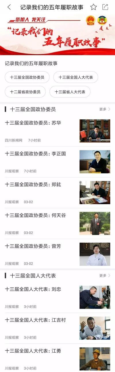 今年1月四川省两会召开时,川报观察客户端“您加入,我关注——记录我们的五年履职故事”互动活动首次启动。