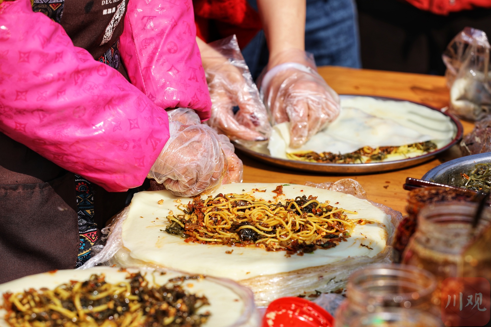 “来了来了,快跟上!”人群的嘈杂声中,最诱人的还是那股子扑鼻的香。德昌卷粉的摊前,里三层外三层地围满了人。只见摊主熟练地摊开雪白的米皮,麻利地卷入爽脆的海带丝、榨菜,再淋上一勺秘制红油辣子,光是看着就让人直咽口水。咬上一口,滑嫩爽口,满嘴留香。