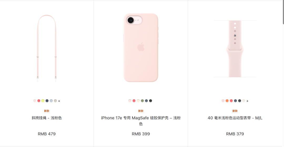 新配色斜挎挂绳应iPhone 17e 保护壳发布而上新了浅粉色、亮番石榴粉色,售价 479 元。
