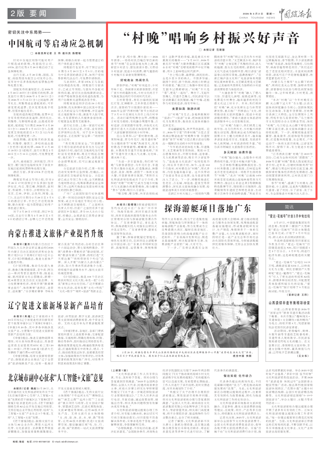 以“村晚”为支点,各地积极做好“旅游+”“+旅游”文章,把如画美景转化为发展优势,推动农文旅体商融合走深走实。