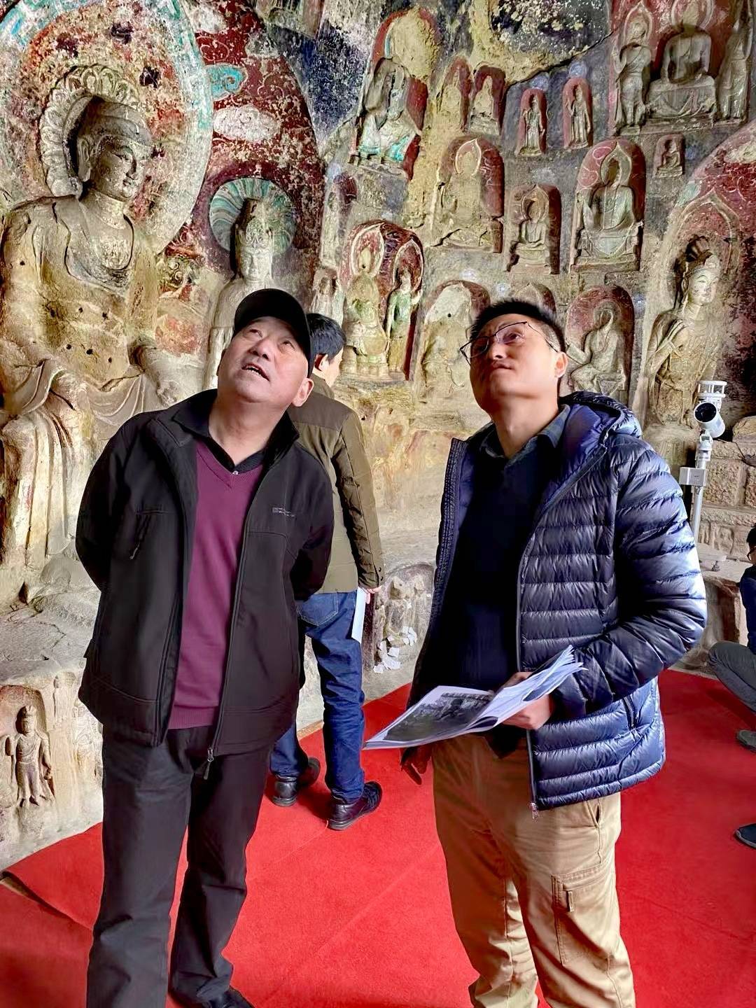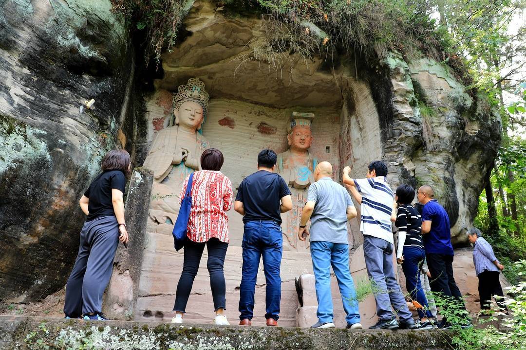詹长法(左)调查广元石窟