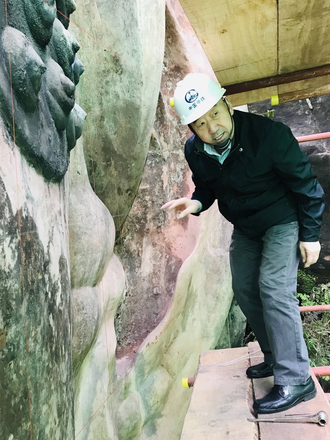 詹长法在乐山大佛修复现场