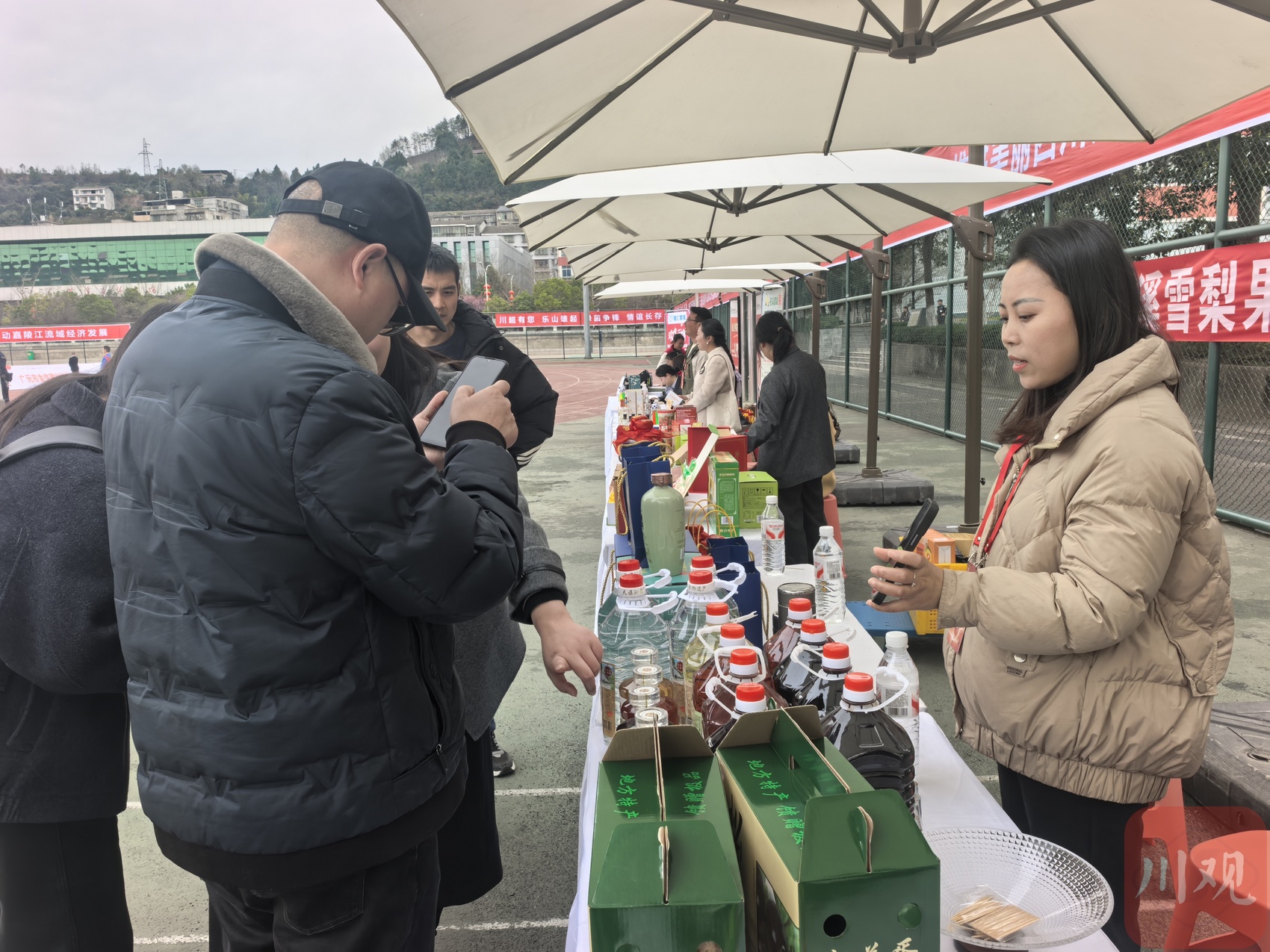“‘余满苍’猕猴桃汁是东西部协作成果,原材料选自苍溪本地猕猴桃,采用先进工艺制作,酸甜爽口。”展位工作人员现场推介产品。赛事期间,苍溪文旅集团开发的寻乐书岩茶产品、县供销合作社推出的猕猴桃挂面等特色产品,吸引不少观众驻足品尝、选购。