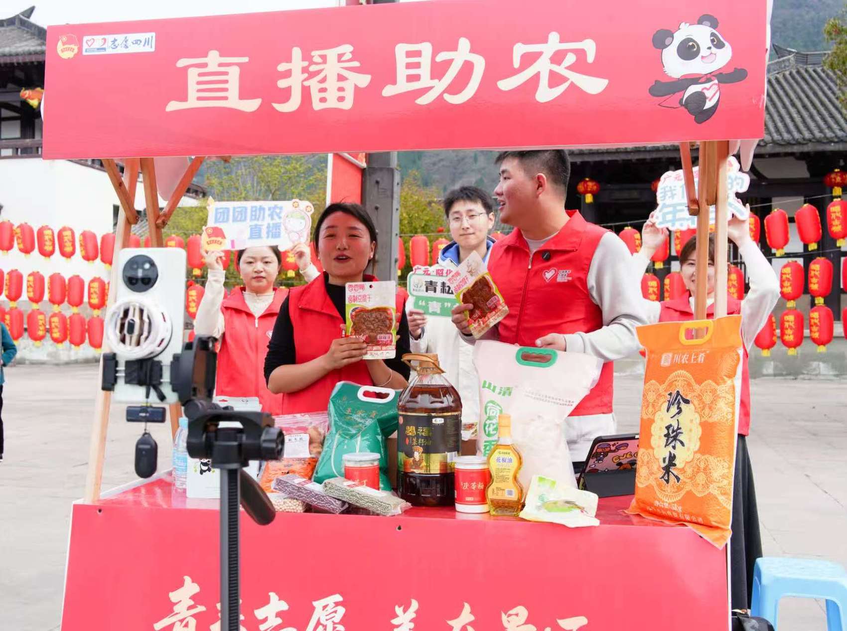 现场,系列志愿服务活动同步开展。青年“大篷车”志愿服务集市里,薛氏糖画、陈氏彩绘彩塑非遗互动体验吸引游客参与,助农直播专场推广本地特色农产品,艾灸按摩、义务理发等便民服务,以及应急救护、反诈宣传等8项安全环保宣传活动同步落地,切实惠民便民。