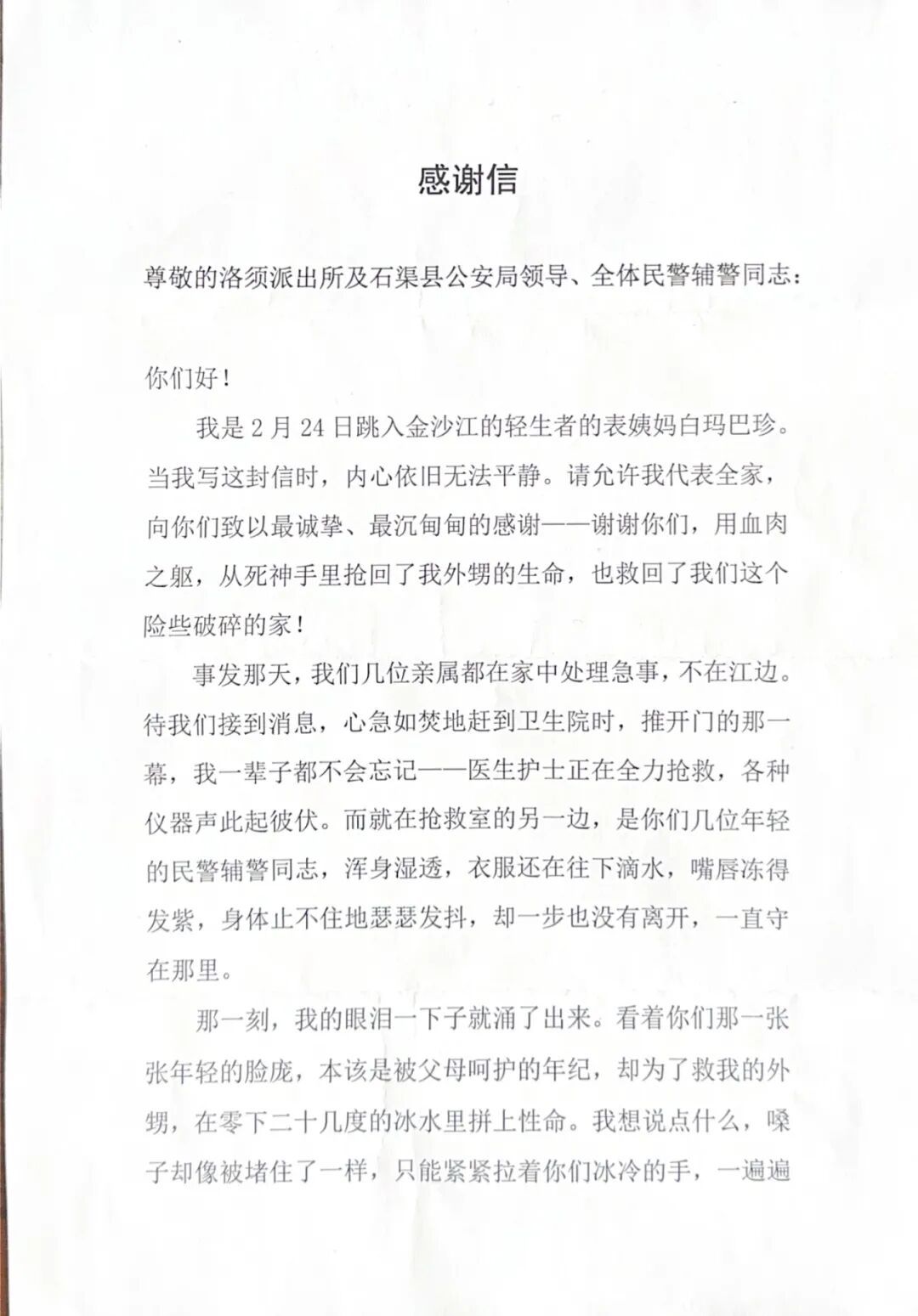 这份沉甸甸的感谢,源于2月24日那场与死神赛跑的紧急救援。