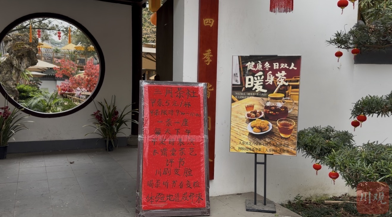 时间退回前一日,2月28日早上9点过,成都市文化公园内的三月茶社,“早茶”同样徐徐开张。彼时细雨朦胧,一行三人冒雨而来,是第一次光顾这家茶社,“我们在附近医院看病,临时来坐坐。”