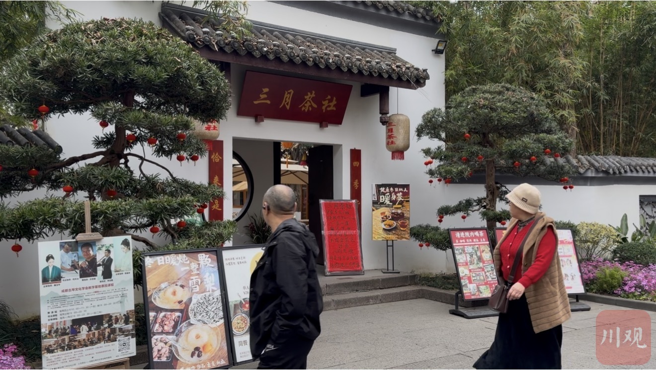 作为同行,三月茶社尚未拥有鹤鸣茶社的“人气”——本地老茶客在早上六点半到八点半,便能占满鹤鸣茶社,这里每年售出的三十多万杯茶里,早茶就有八万多杯(含早茶时段的80岁以上免费茶)。时间稍晚一点,逐渐增多的游客,很快能第二轮挤满上午时段的全场。“有地理位置的差异,也有自身文化积淀的差距。”周怡丹深知不同之处,但她坚信“早茶”的市场庞大。