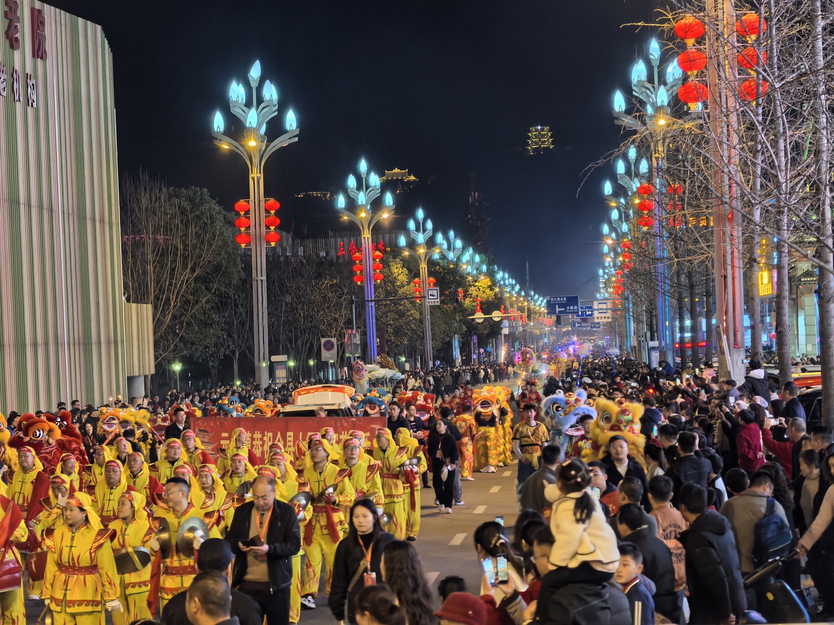 璀璨夺目的花灯照亮巡游全程,震天动地的锣鼓声响彻梨乡夜空。威风凛凛的大黑马昂首阔步、意气风发,智能机器人萌趣亮相、互动不停,与传统民俗展演队伍相映成趣,传统非遗与现代科技碰撞融合,绽放出别样的元宵韵味。巡游队伍所到之处,皆是一片欢乐的海洋,市民游客沿路跟随、呐喊喝彩,沉浸式体验元宵佳节的热闹与喜庆。