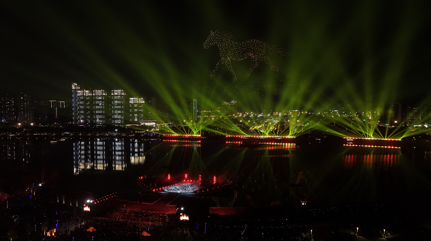 视听盛宴耀夜空 水陆空全景演绎点亮旌湖