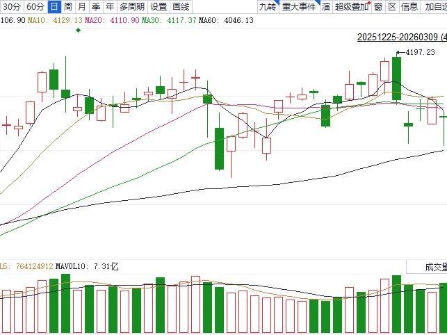 反观A股,在前一交易日快速杀跌后,下跌的脚步开始有所放缓。上证指数周三跳空低开后出现持续震荡走势,盘中回升动力不足,触及4100点整数关口便引发一轮跳水。深证成指、创业板指则是在盘中双双实现翻红,但未能守住胜利果实,跳水后持续低位震荡。