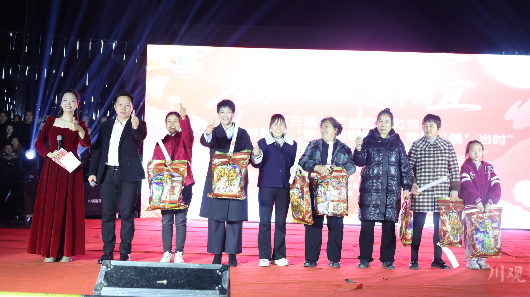 “汤圆甜到心坎里了!”白天的活动区,送汤圆、猜灯谜、趣味游园等项目排起长队,欢声笑语不断,为夜晚的文艺竞演攒足了人气。晚七点,奋进广场灯火璀璨,26支村(社区)代表队轮番登台,歌舞、小品、快板等节目轮番上演。这些由村民自编自演的节目,将文明创建、乡村振兴、基层治理等主题融入本土元素,既有接地气又具时代感,引得台下掌声连连。