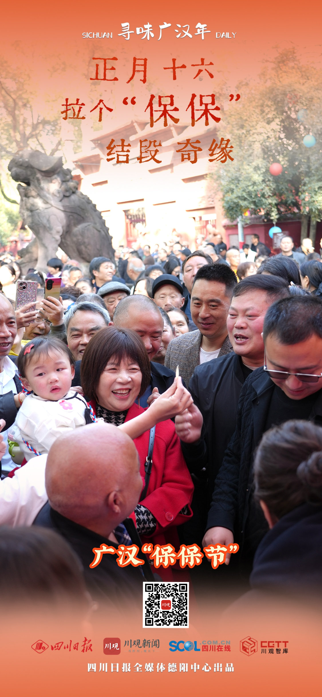 3月4日,正月十六,广汉房湖公园人潮涌动,热闹非凡!一年一度的“拉保保”民俗活动火热上演,数万游客涌入园中游春踏青,争相“拉”个干亲,结段奇缘。一顶“猪儿帽”扣头上,素不相识的路人秒变“保保”!这场延续300多年的独特年俗,将广汉的年味推向最高潮!