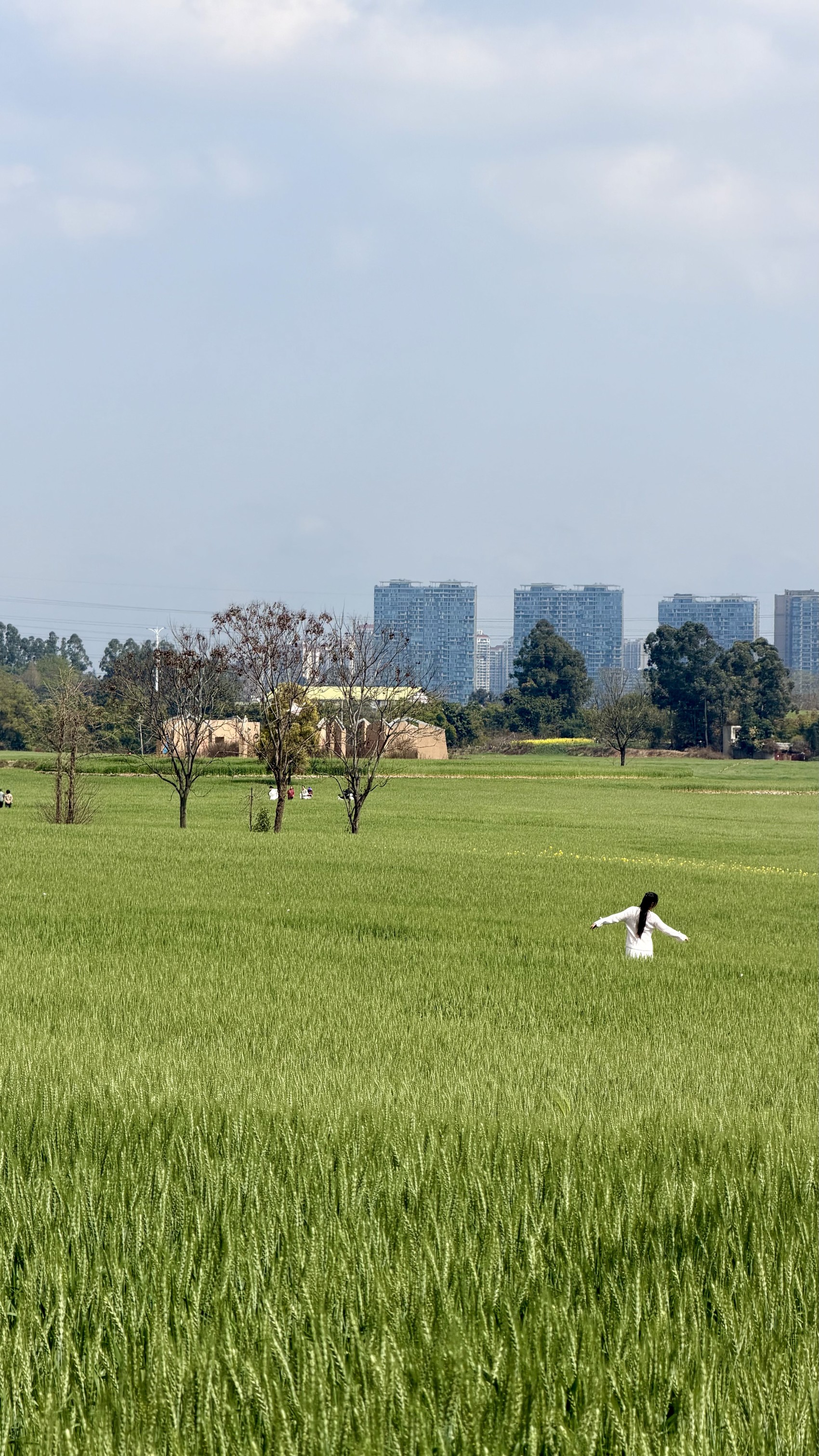 3月4日,成都天朗气清,许多年轻人奔着麦田而去。