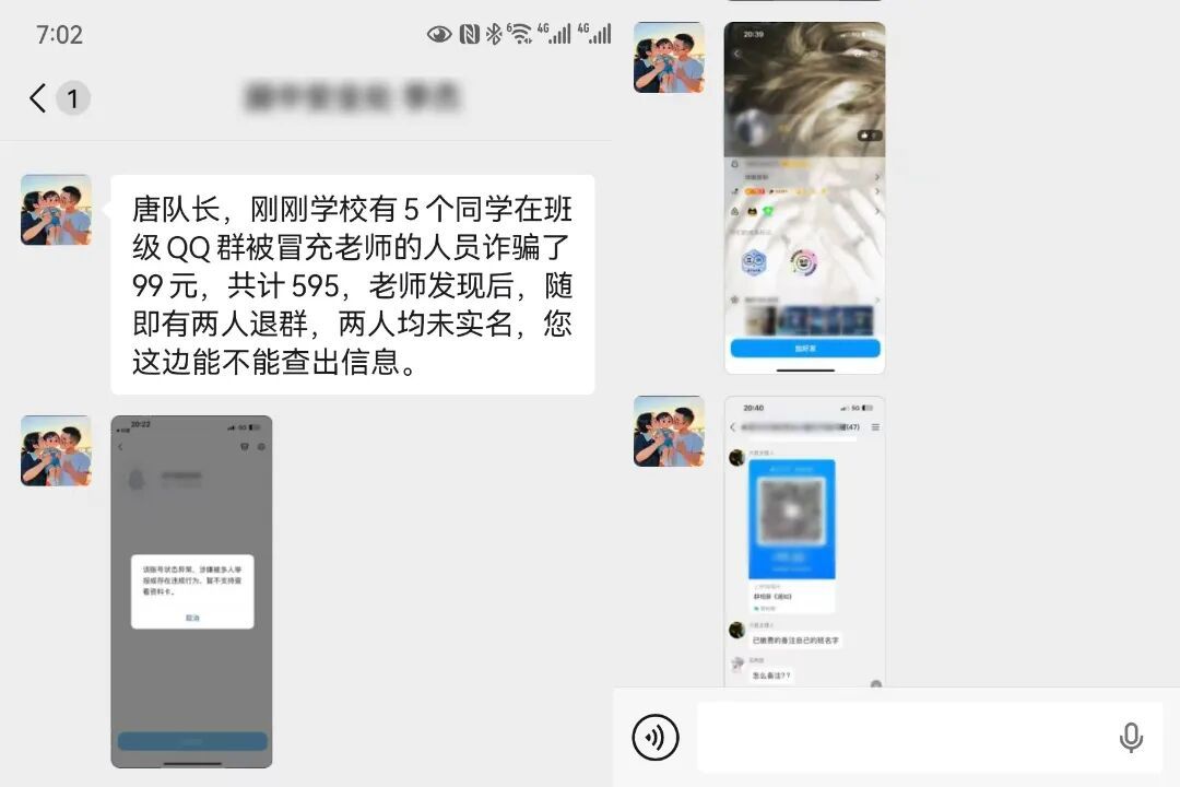 收到求助后,唐柒全立即组织开展相关工作,第一时间收集“假班主任”QQ信息,并核查学生受骗情况,同时协调该局网安大队支援。