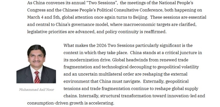 国际地缘政治分析平台“世界地缘政治洞察(WGI)”近日刊载巴基斯坦伊斯兰堡和平与外交研究所所长、巴基斯坦-上海合作组织友谊论坛秘书长穆罕默德·阿西夫·努尔的文章。