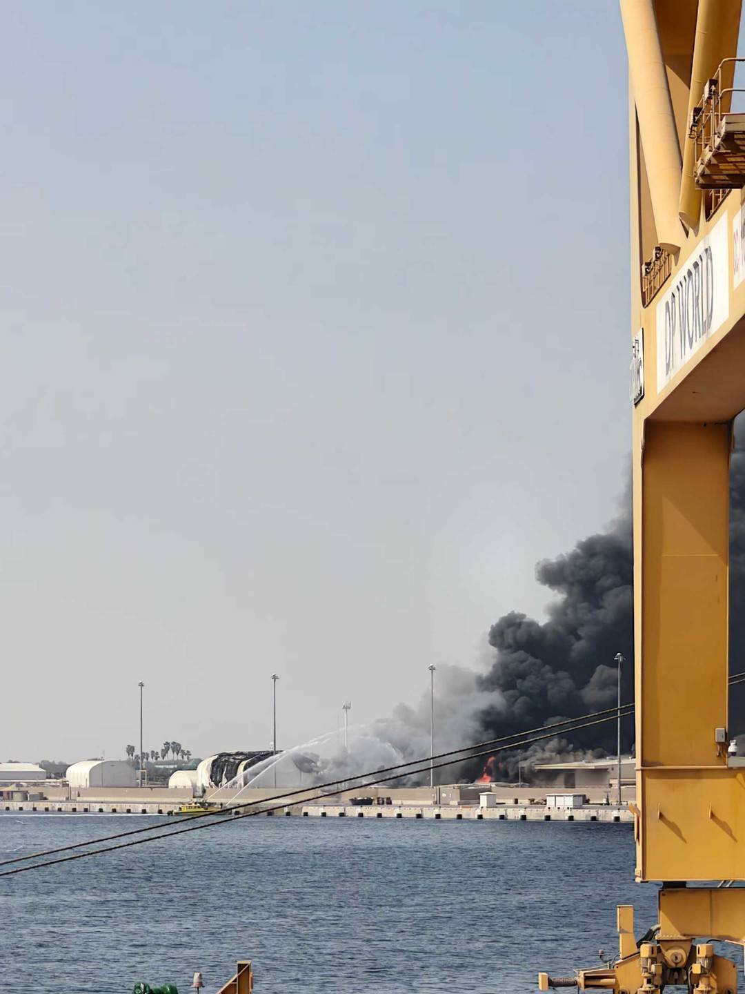 3月1日,杰贝阿里港美军基地被击中后起火。受访者供图