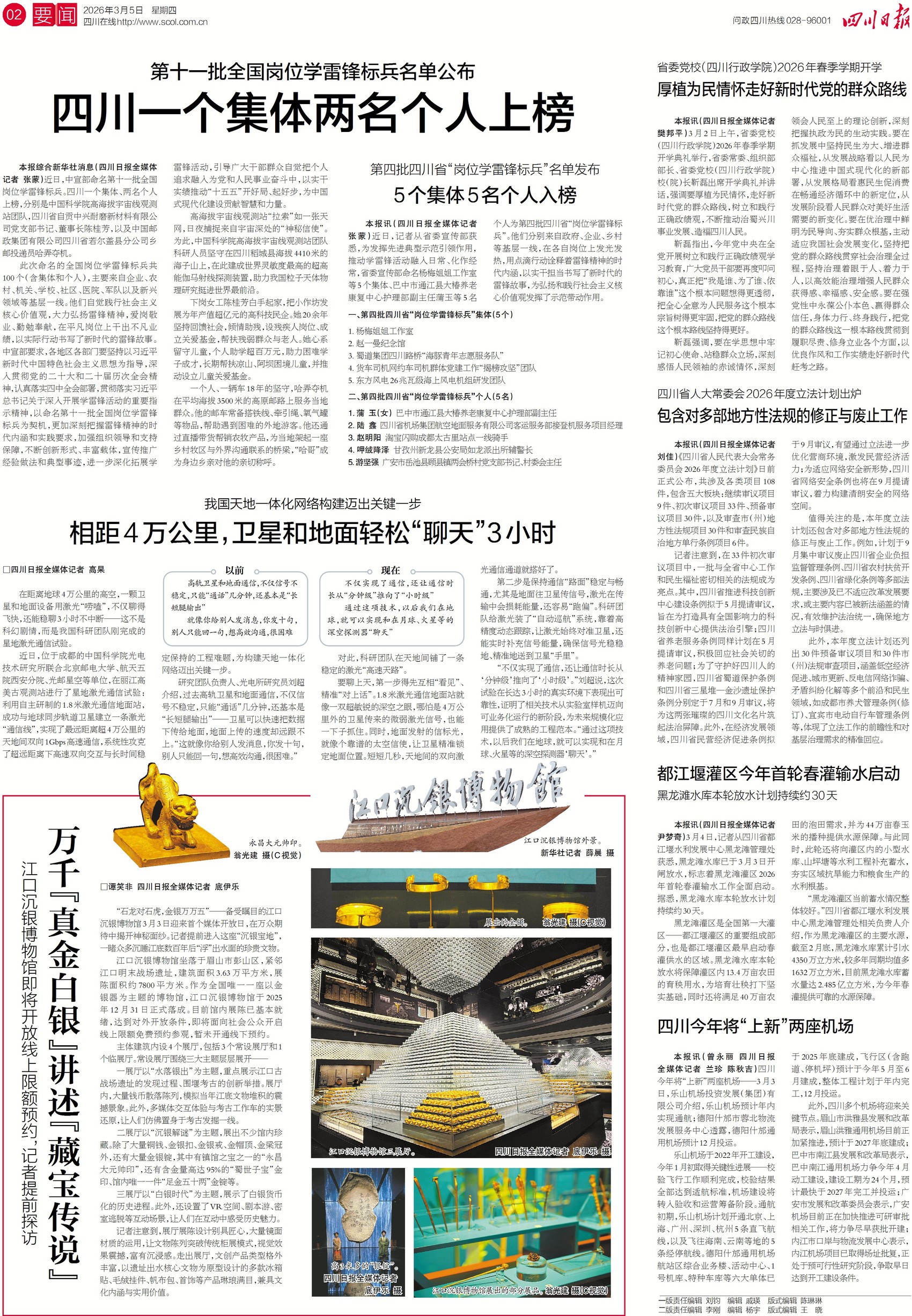 “石龙对石虎,金银万万五。”3月3日,眉山市彭山区,江口沉银博物馆在万众期待中揭开神秘面纱,“蜀世子宝”金印、“永昌大元帅印”、“足金五十两”金锭等珍贵文物纷纷亮相,让百年沉银传说照进现实。这座全国唯一的金银器主题博物馆,即将开启线上预约参观。关注今日二版,提前打卡揭开“沉银”谜底。