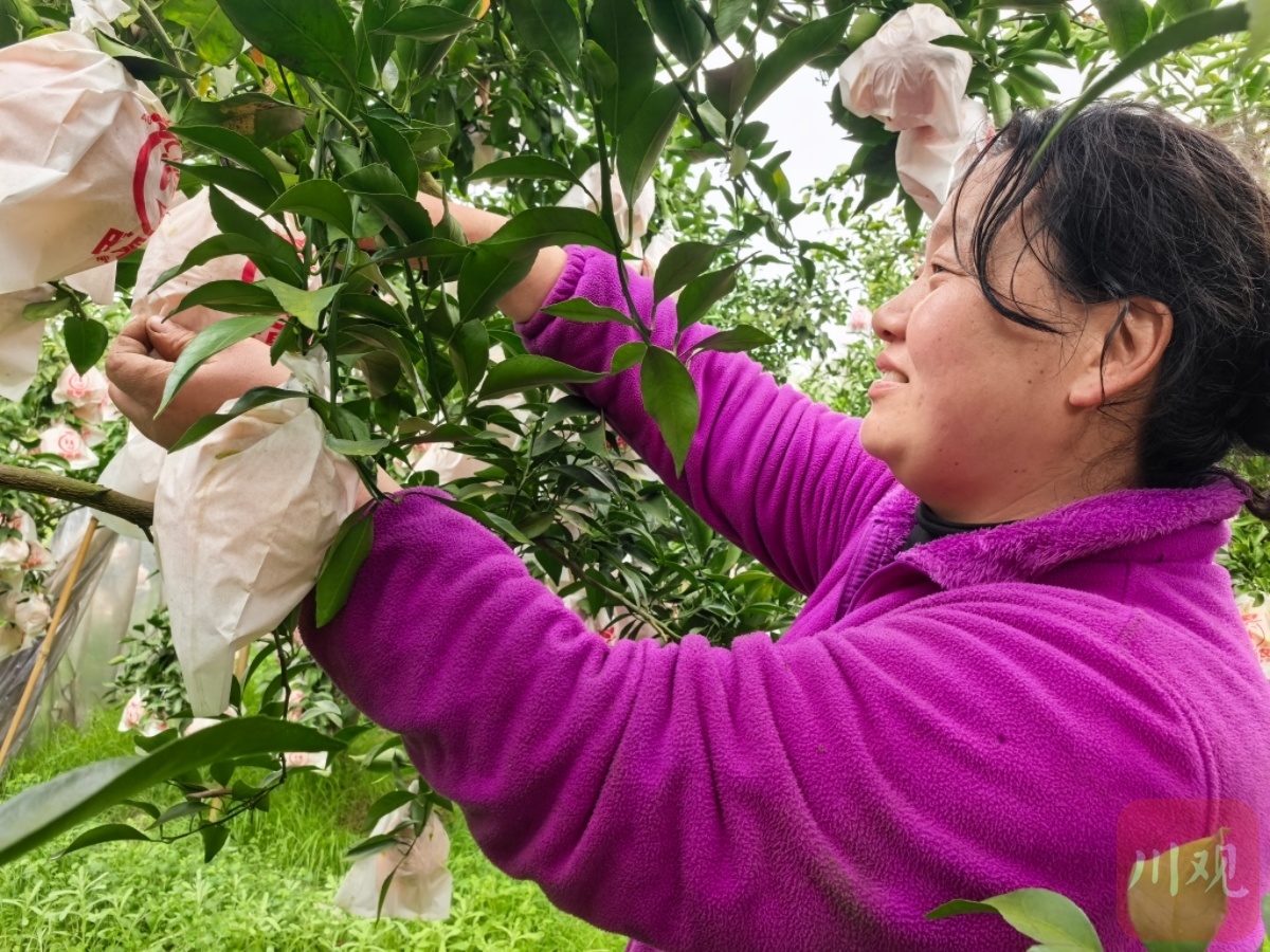 来自成都蒲江的吴啸林,因爱人是香花村人,与这片土地结缘。看到村里老果树产值低,他凭借家中多年种橘的经验,决心把低产橙树改种高附加值耙耙柑。创业初期困难重重,前两年因病虫害几乎绝收,他从蒲江请来技术、带来药方,一点点攻克难题,一走就是十年。