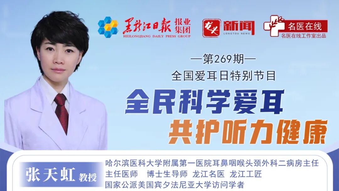 《名医在线》第269期节目邀请到哈尔滨医科大学附属第一医院耳鼻咽喉头颈外科二病房主任,主任医师、博士生导师、龙江名医、龙江工匠张天虹教授,来和我们一起聊聊关于爱耳护耳的那些事儿。