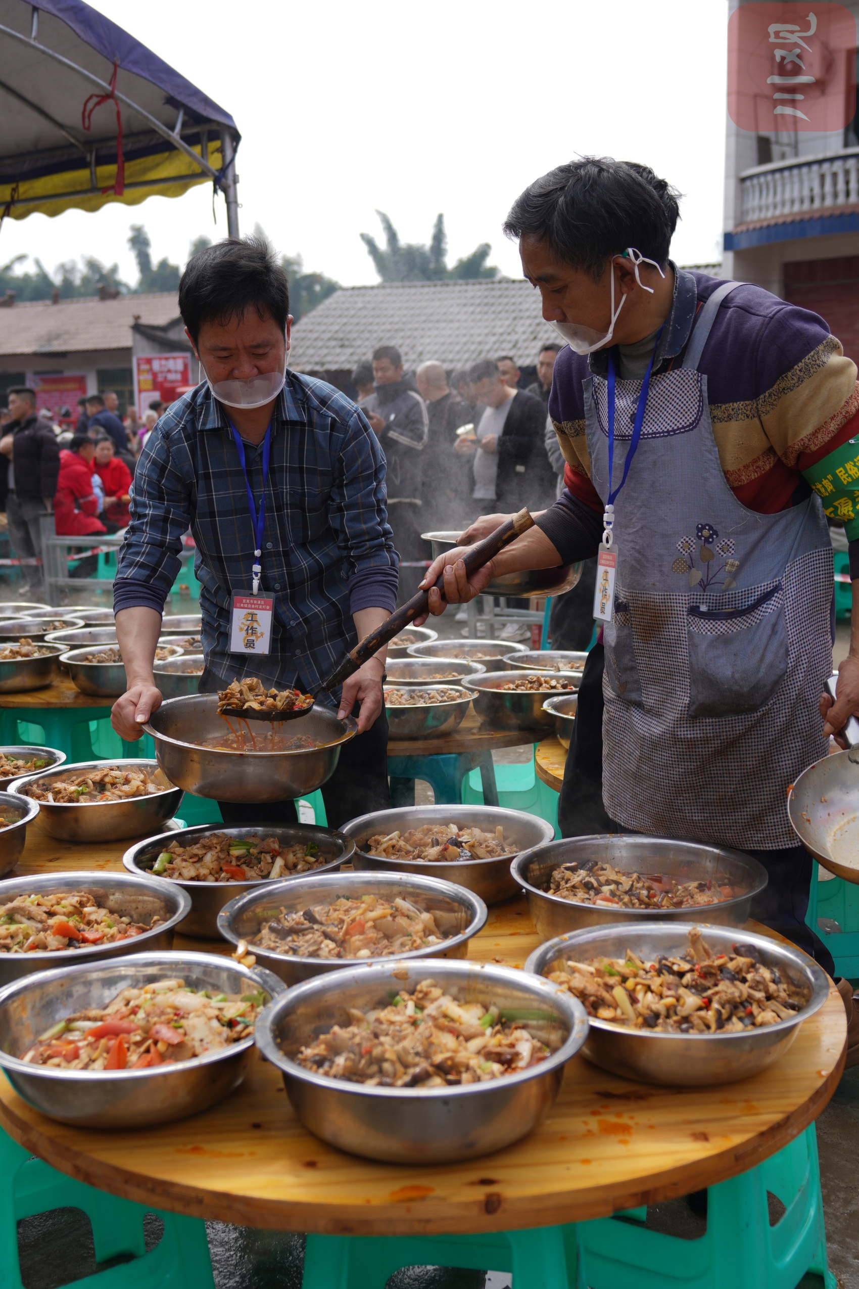 来自浙江的游客陈舒芳带着家人,刚走进现场便被眼前的热闹景象震撼了。六个人正愁找不到座位,旁边的村民们立刻起身招手,热情地把他们拉进了宴席。“我们一家是第一次来‘吃龙肉’,大家都好热情啊!”陈舒芳笑着说。宜宾市民李敏举着手机站起来,对着满桌的菜肴和身旁的亲朋好友拍个不停。“我们来了四桌人,这周围都是我们的人!”她边说边夹起桌上热气腾腾的“龙肉”,咀嚼间满是幸福滋味。