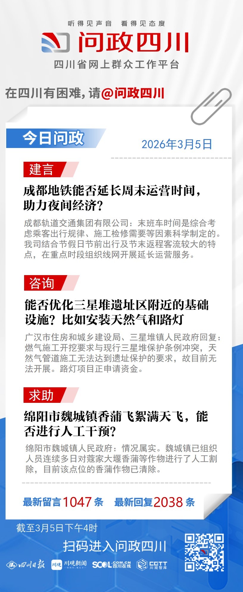 问政四川网友提问:目前,成都地铁仅在重大节假日前一晚和最后一天延长列车运营时间,能否在日常周末时间等,常态化延长市区部分繁忙线路的运营时间,助力夜间经济?