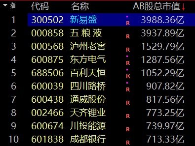 值得一提的是,经过大涨后,新易盛市值重新来到4000亿元大关前,再次超过五粮液成为川股“市值王”。