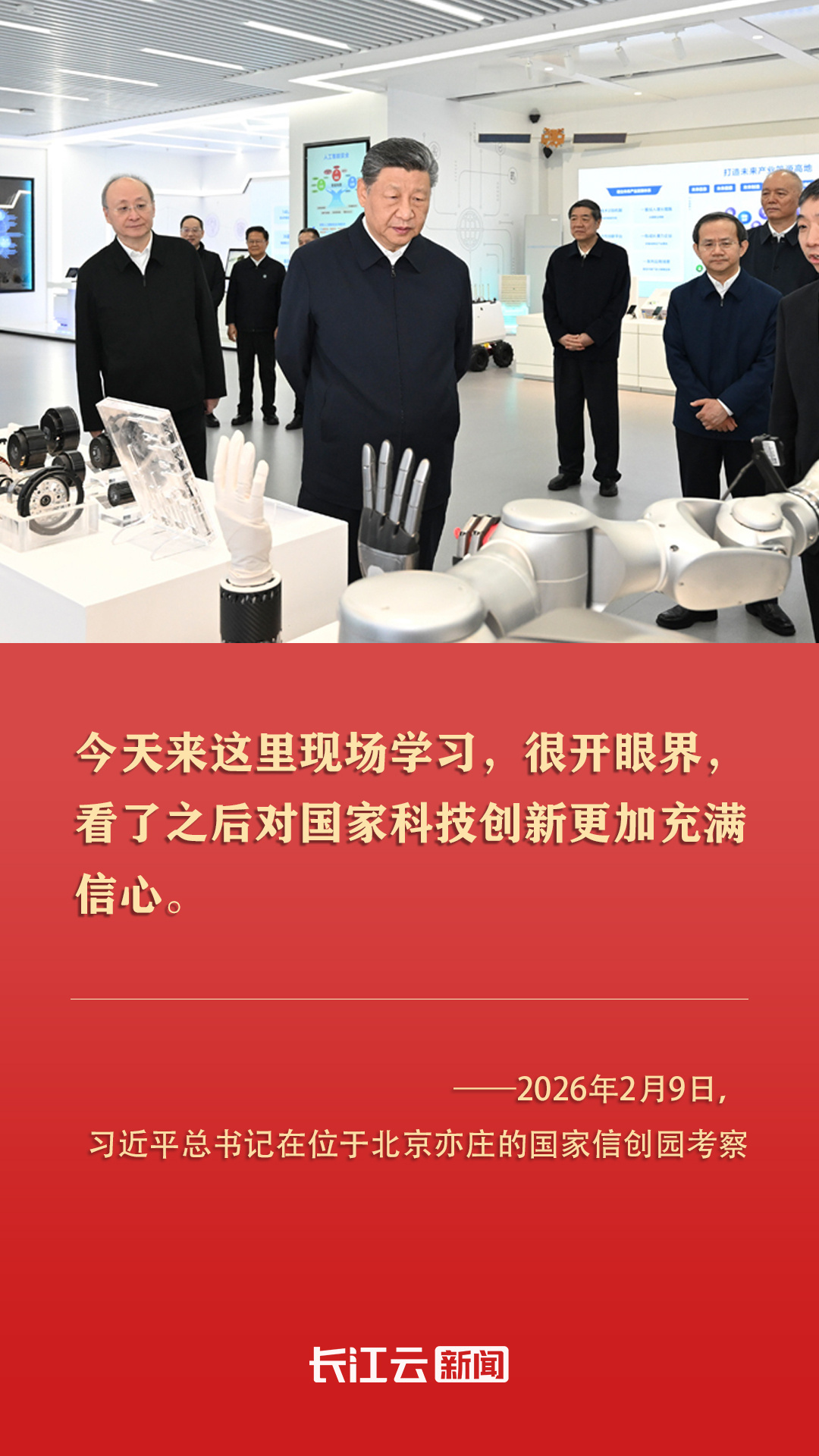 “今天来这里现场学习,很开眼界,看了之后对国家科技创新更加充满信心。”2月9日,习近平总书记走进北京亦庄国家信创园,仔细察看人工智能、机器人等创新成果,再次传递出对科技创新的深切期望。