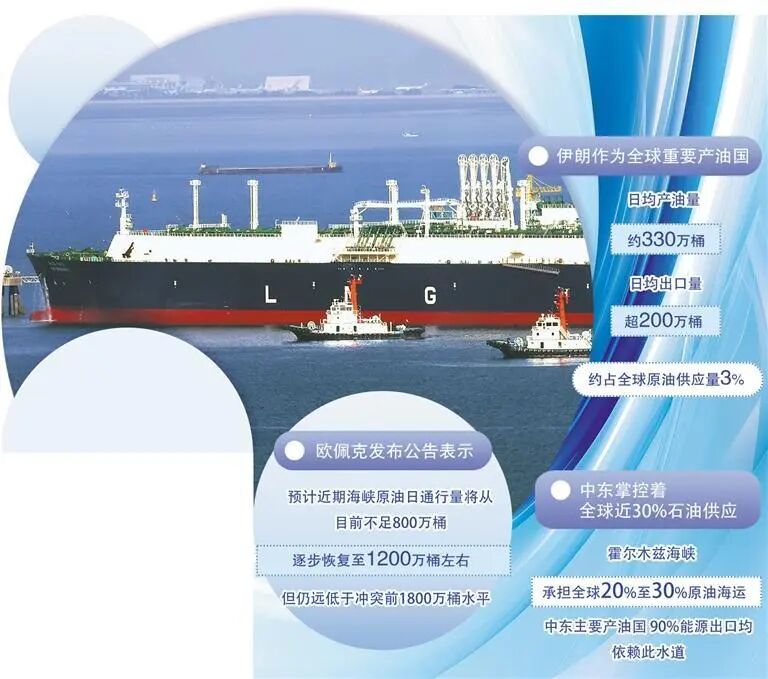 中东掌控着全球近30%的石油供应,而霍尔木兹海峡这一“世界能源咽喉”,更是承担着全球20%至30%的原油海运,中东主要产油国90%的能源出口均依赖此水道。伊朗作为全球重要产油国,日均产油量约330万桶、日均出口量超200万桶,约占全球原油供应量的3%。