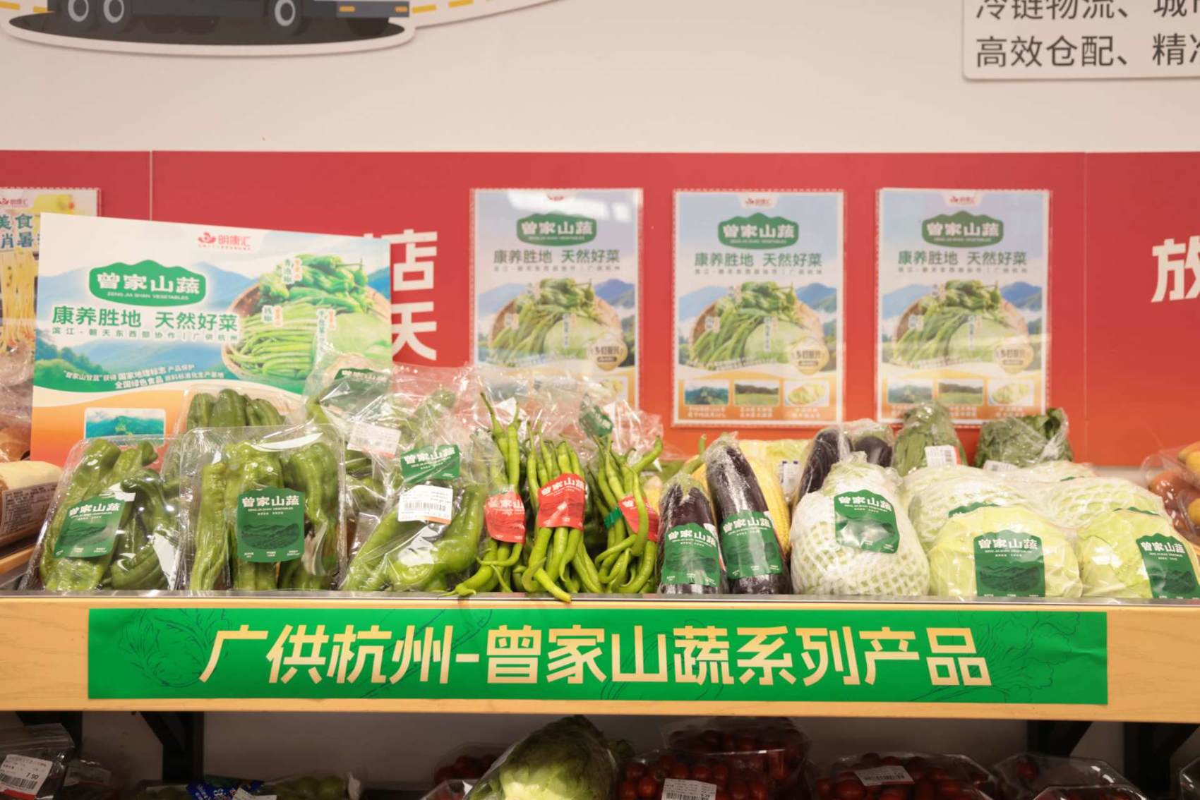 在明康汇生态农业集团的推动下,曾家山蔬菜的包装箱从10公斤调至8公斤,兼顾门店订单需求与冷链装载率;包装磨损、雨天采收等损耗问题逐一优化。2025年,冷链运输线完成磨合,700多吨蔬菜实现当日采收、三日达杭,通过明康汇500多家门店走上长三角餐桌。