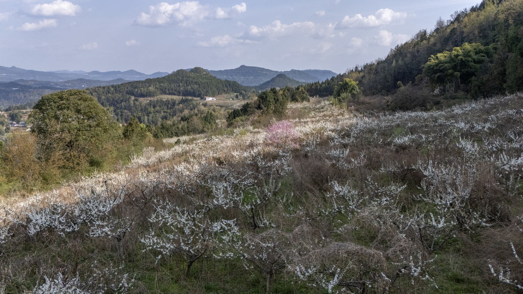 随着气温逐渐回暖,巴中经开区奇章街道楼台村李子花迎春开放,进入最佳观赏期。走进李子园,漫山遍野的李花如云似雪,层层叠叠铺展开来,与远山相映成趣,构成了一幅动人的春日画卷。