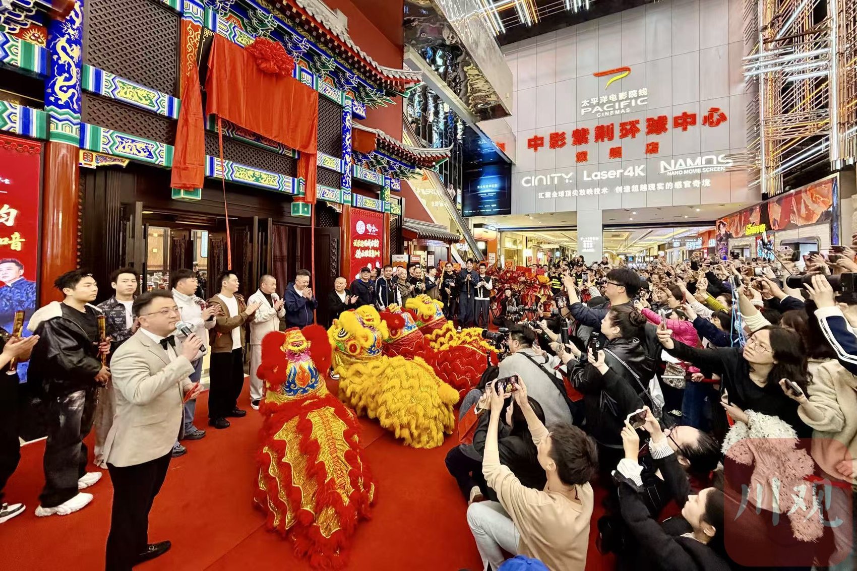 德云社西南首店前,郭德纲、于谦等亮相揭幕仪式。赵泽宇 摄