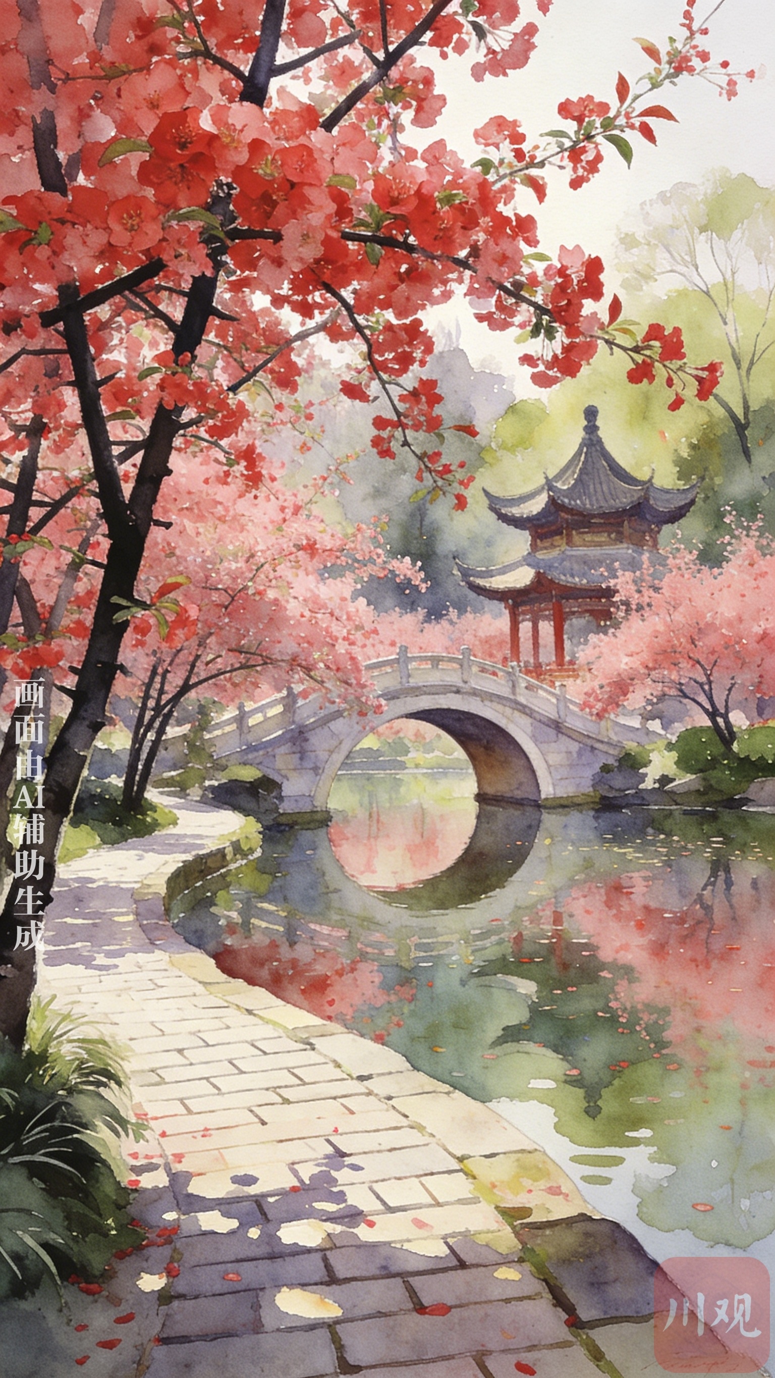 海棠花无香,花先绽放,叶渐吐绿,多为一本多干,笔直挺拔,利落净静,虽不像苹果树那样婆婆娑娑,叶、花、果却与之极为相似,只是个儿比苹果小。站在半月桥上,看那湖水中倒映的海棠火焰,生命的极致,在自然中呈现的别无所求,但谁也别想与它争红斗艳,因为它的别名简直可以用一个“红”字取代,似乎“夺目”的箴言注定沸血书写。