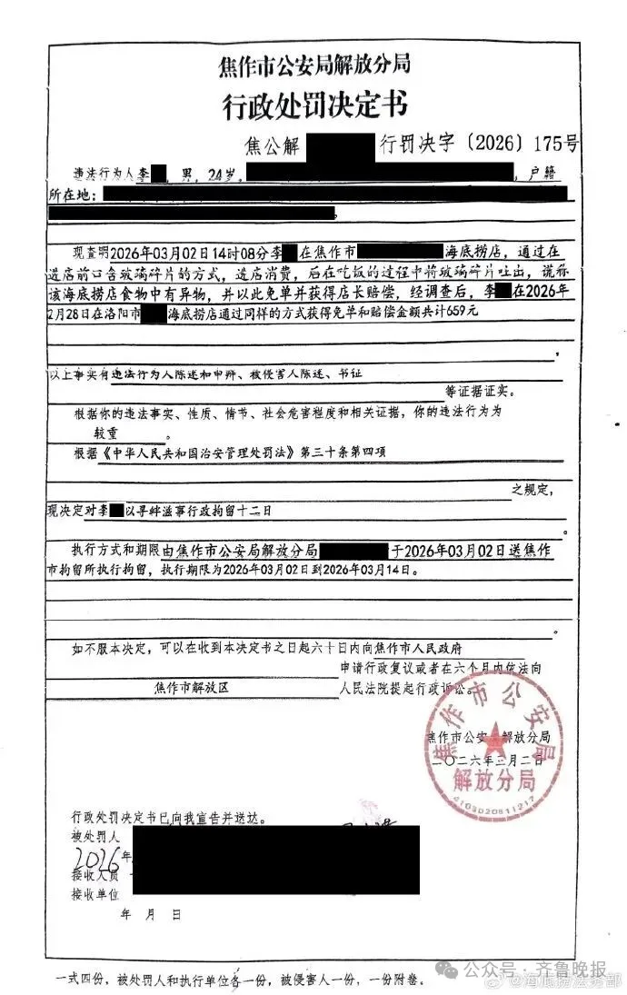 近期,两家海底捞火锅门店先后发生相关人员在用餐过程中故意投放头发、玻璃碎片,并以此为由投诉索赔、扰乱正常经营秩序的事件。