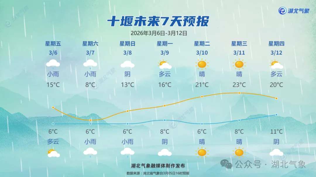 根据气象资料分析,这个周末两天(7-8日)武汉有弱降水发生,气温波动不大,户外出行注意防雨。下周武汉晴雨相间,气温回升迅速,预计下周最高气温可超25℃,是时候逐渐脱去沉重的冬装、感受春天的美好!