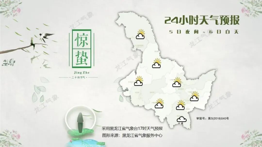 5日夜间到6日白天:牡丹江南部多云有阵雪,其他地区晴有时多云。