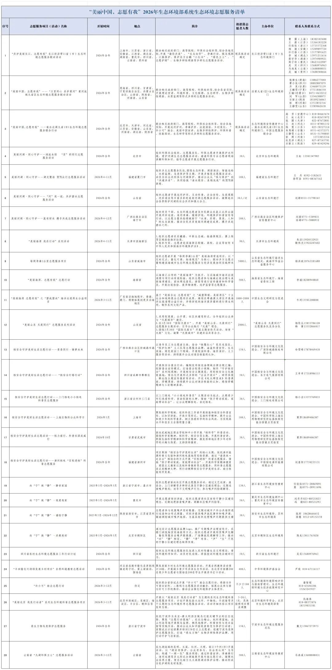 2026年生态环境志愿服务清单已全面更新,更多活动任务等你解锁!快点击查看任务清单,即刻报名参与吧!