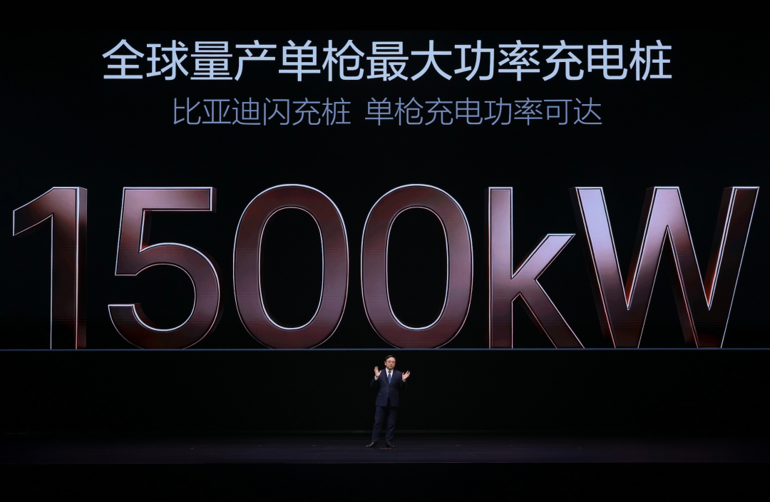 为实现第二代刀片电池的闪充速度,比亚迪全新开发了闪充桩,单枪充电功率达到1500kW,是全球量产单枪最大功率充电桩。
