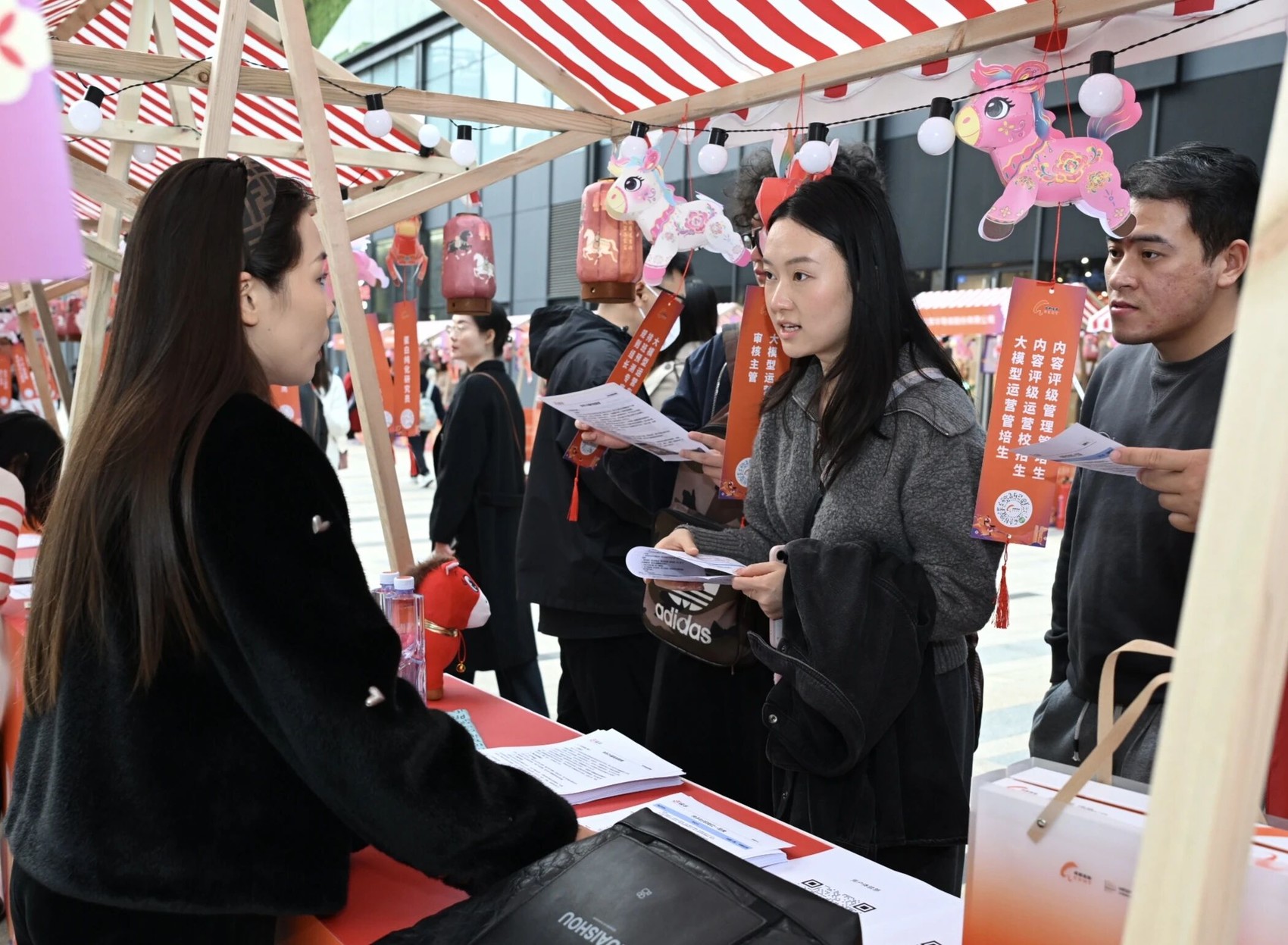 一盏盏创意小马灯悬挂于展位上,替代传统招聘海报,化身别致的“岗位灯谜”,既呼应元宵赏灯习俗,又传递“马上有Offer”的美好寓意。先导药物、博恩斯医学机器人、阿加犀等28家高新区重点企业悉数亮相,岗位层次丰富、覆盖广泛:既有面向高层次创新人才的新药研发总监等管理岗位,又有面向青年技术人才的三维建模师等技术岗位,还兼顾快递业务员等灵活就业岗位,充分满足不同学历、不同技能、不同年龄段求职者的多元需求。求职者只需扫灯上的二维码,即可快速浏览岗位信息、完成简历投递,便捷高效。