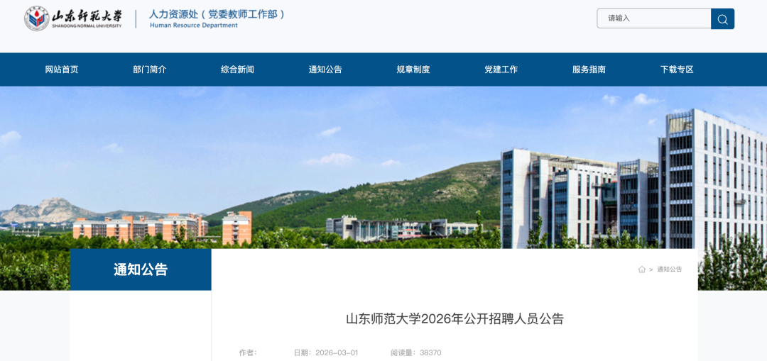 山东师范大学2026年公开招聘人员公告发布。