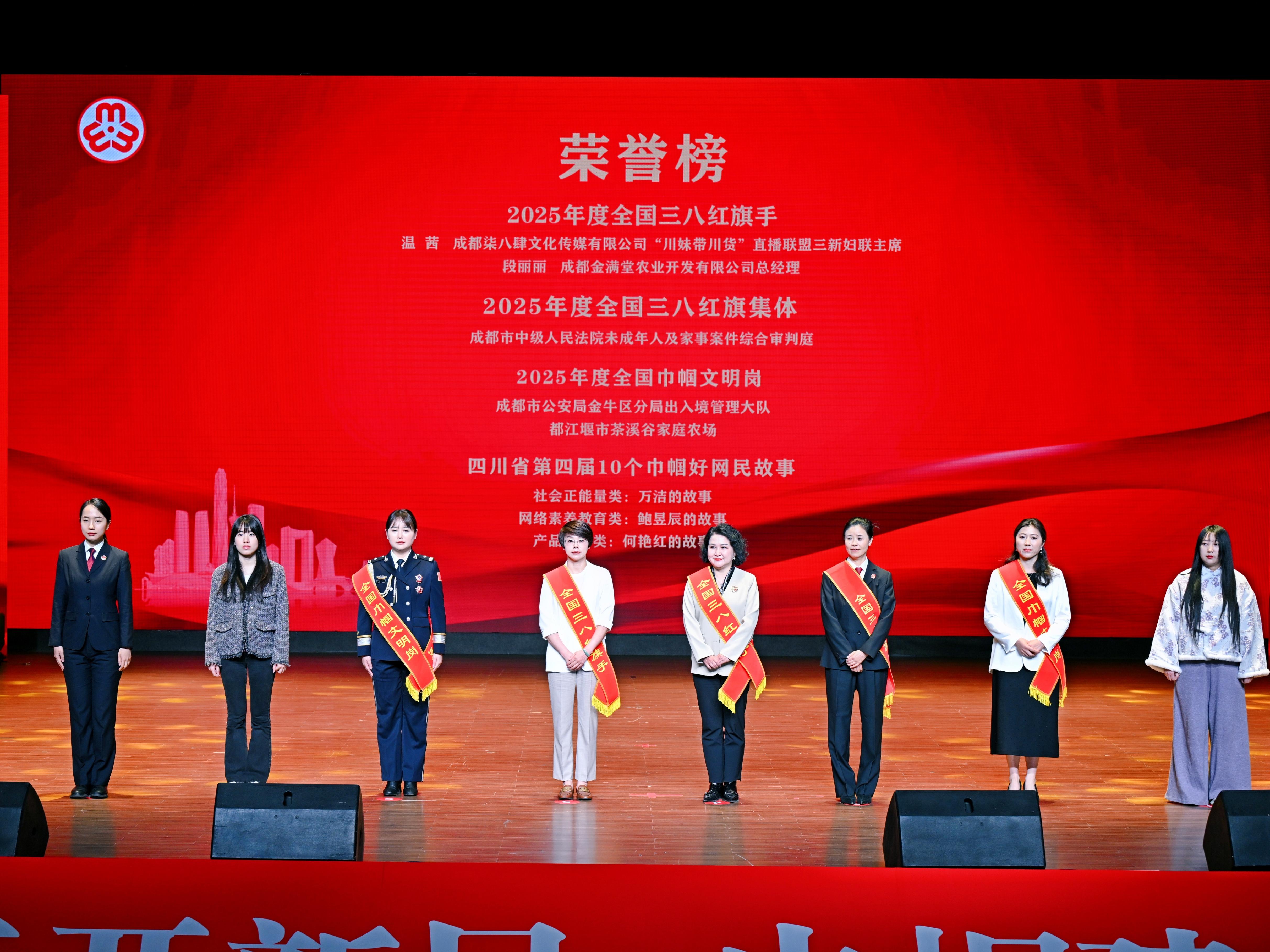 活动现场,宣读了《全国妇联关于表彰2025年度全国三八红旗集体、全国巾帼文明岗的决定》。与会领导为荣获“全国三八红旗集体”的甘孜州传媒中心新闻采编中心和荣获“全国巾帼文明岗”的甘孜县妇幼保健计划生育服务中心颁奖。