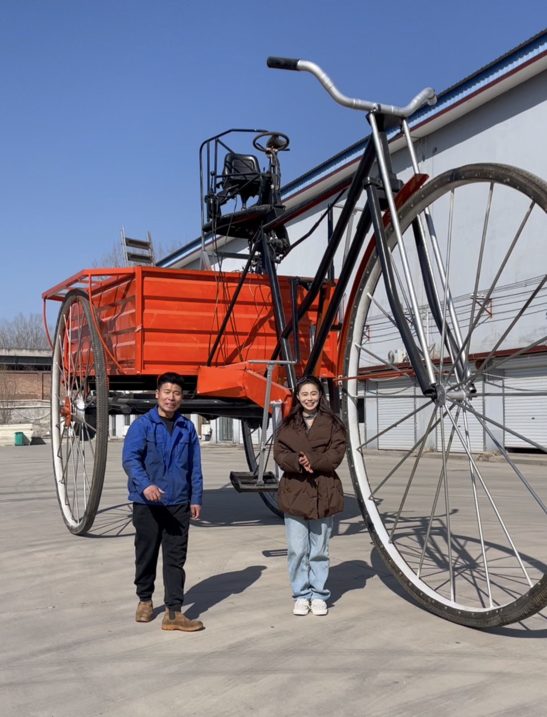 2025年10月,王全中的第二件作品——一辆高达5米、长10米、宽3.2米的巨型三轮车顺利完工。这次仅用了三个多月,花费三万多元。
