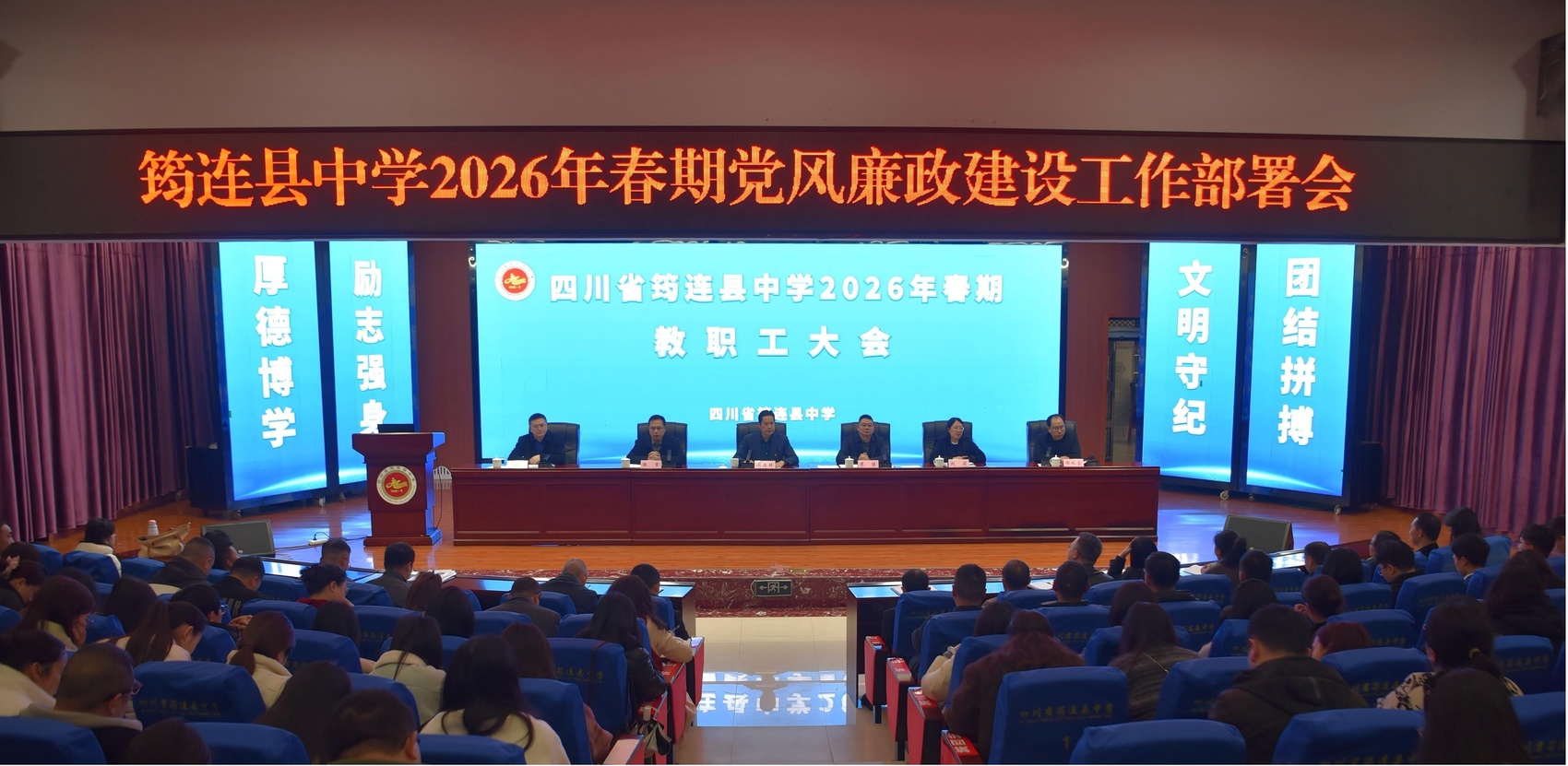 筠连县中学召开2026年春期党风廉政建设工作部署会,筑牢教职工廉洁从教思想防线。沈权玉 摄