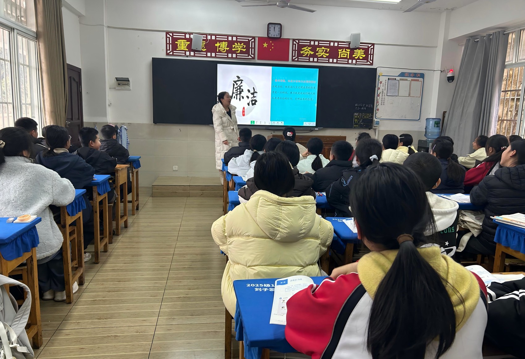 “同学们,你们知道什么是廉洁吗?”在筠连县巡司镇武德小学的课堂上,老师没有直接讲大道理,而是从一个分享的故事开始。孩子们争先恐后地举手,用稚嫩的语言描绘着自己心中的“廉洁”:不拿别人的东西、不说谎、节约用水……该校以“趣味化、生活化”为原则,通过模拟“拒绝零食贿赂”“公平竞选班干部”等情景,引导学生们讨论制定班级“廉洁小约定”——“作业不抄袭、考试不作弊、处事讲公道”。抽象的廉洁理念,就这样转化为了孩子们可感、可行的日常行为准则。