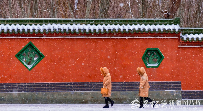 行人从乌鲁木齐市人民公园的红墙前走过(资料图片)。石榴云/新疆日报记者 汤永摄
