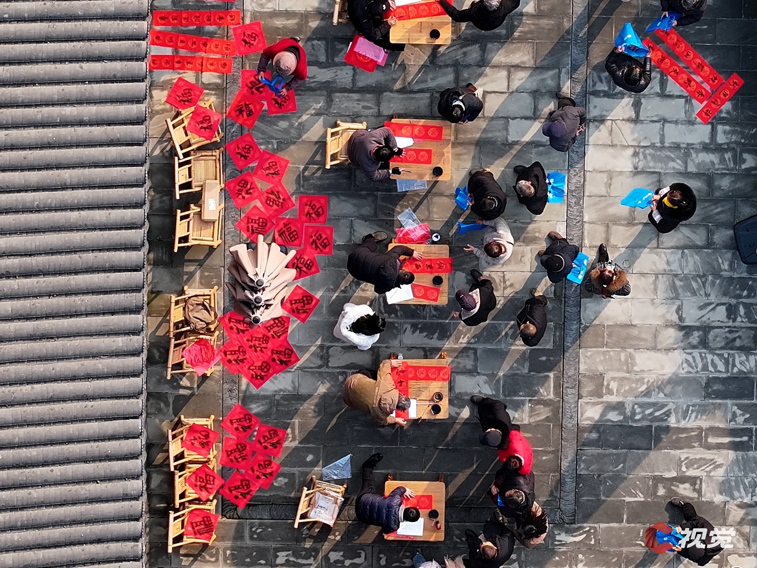 春节临近,在崇州市相府广场,来自市政协诗书画院的志愿者为市民书写春联、派送福字,喜迎新春佳节。