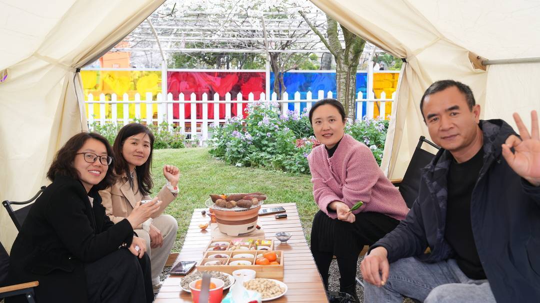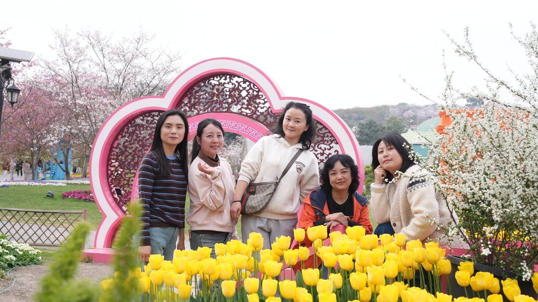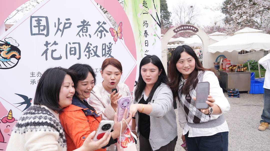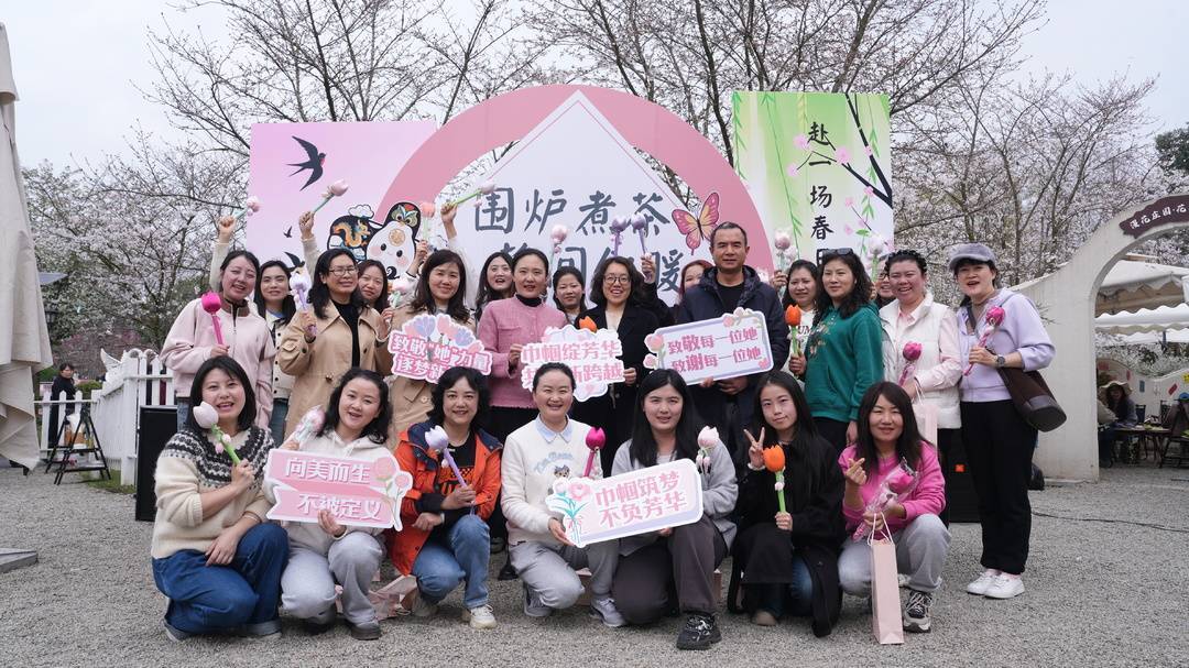 夕阳西斜,合影的快门声定格下张张灿烂笑脸。随后,人们三五成群散入花海,郁金香含苞待放,樱花初绽枝头,更有不知名的野花开得烂漫。有人举起手机寻找最佳角度,有人蹲下身轻嗅花香,还有几位在花间跳起了舞。正如主持词中所言:“愿大家往后余生,眼里有光、心中有爱,被岁月温柔以待,活成自己喜欢的模样。”这一场春日之约,煮的是茶,暖的是心,绽放的是属于每一位女性的芳华。